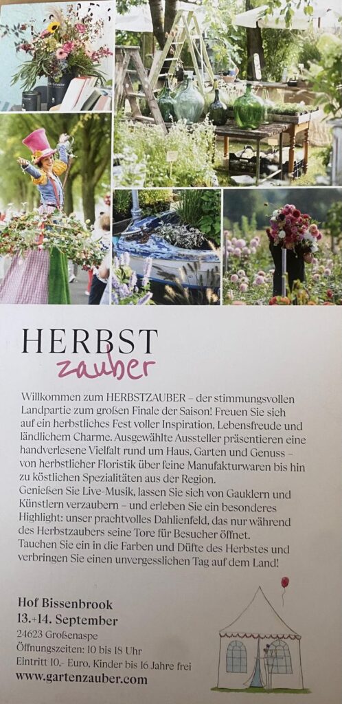 Am 13. und 14. September 2025 findet ihr uns auf dem stimmungsvollen Herbstzauber. Dort präsentieren wir unsere Produkte in herbstlicher Atmosphäre – wir freuen uns, euch an unserem Stand begrüßen zu dürfen.
